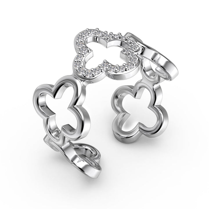 Hollow Design Four-Leaf Clover Flower Shape Ring